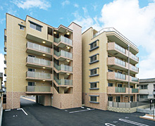 今回、女性に好まれる建物を意識しました。第一印象はとても大事。外観のタイルは、いろいろなマンションを見ては写真を撮り、この場所にはこのタイルでという具合に決めたため、取り寄せるのに苦労したものもあったようです。正面のエントランス、外からは見えにくい自転車置き場、駅側につけた裏門など、1つ1つこだわっています。また、住宅街の中の建設でしたので、地域住民の方に対しては色々な面で気を使いました。ずっとここで暮らしていきますので、1軒1軒営業の方とまわり、公民館で説明会も行いました。おかげさまで、入居も満室で、いいスタートが切れました。
